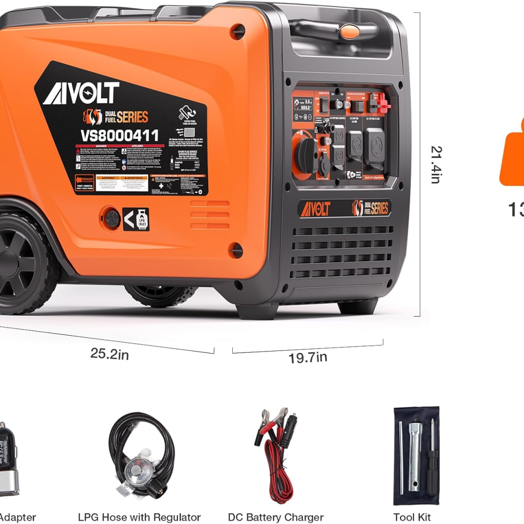AIVOLT 8000W Dual Fuel Super Quiet Inverter Generator with Electric Start – Gas Propane Powered Portable Generator Upgraded Version for Home Backup, RV, Camping & Travel – 50 State Approved