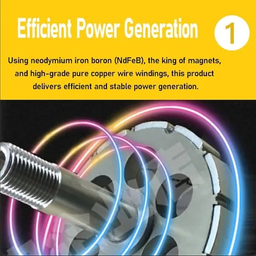 【High-Efficiency Power Generation】Designed with NdFeB Permanent Magnets and Premium Copper Windings, ensuring stable and efficient electricity output. Ideal for Home Use or Job Sites, this generator provides reliable performance for all your power needs. Compact and Durable, it’s the perfect solution for outdoor activities, emergencies, and everyday energy needs.